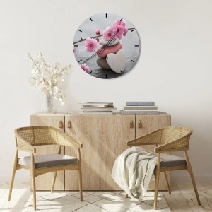 Reloj de pared - Felicidad con flor de cerezo - Flores de cerezo rosadas en una rama con piedras decorativas