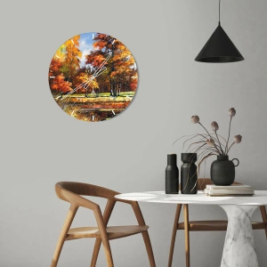 - Este reloj de pared presenta un bosque otoñal, lleno de hojas coloridas y una luz cálida. Perfecto para los amantes de la naturaleza y los paisajes pintorescos.
