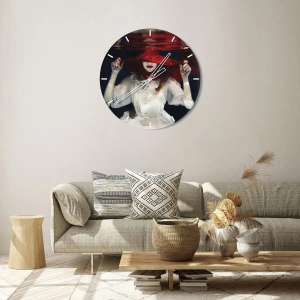 Reloj de pared - Reloj de vidrio - Una mujer con un sombrero rojo sumergida en el agua. - 30x30cm - Blanco y rojo - Decoración de pared moderna para salón y dormitorio ARTTOR