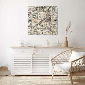 Reloj de pared - Reloj de vidrio - Retrato de una mujer realizado con contornos de arte lineal sobre un fondo claro. - 30x30cm - A la espera de ser descifrado - Decoración de pared moderna para salón, cocina y dormitorio ARTTOR