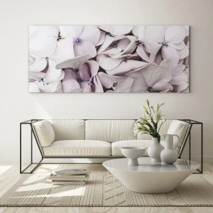 Cuadro sobre vidrio - Impresiones sobre Vidrio - Delicadas hortensias de color rosa claro en primer plano - 50x70cm - En un torrente de flores - Decoración de pared moderna para salón y dormitorio ARTTOR