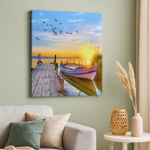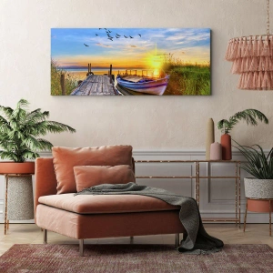 • Paisaje, lago, puente de madera, Paisajes, Náutica, Naturaleza, Para la oficina, Para el estudio, Para el comedor, Para el baño, Para el recibidor, Para el salón, Para el dormitorio, Azul, Naranja, Gris, Panorámico