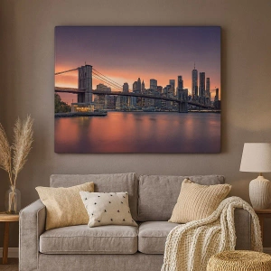 Cuadro sobre lienzo - Impresión de Imagen - Panorama nocturno de la ciudad con un puente y un cielo iluminado. - 70x50cm - Ahogado en el silencio lila - Decoración de pared moderna para salón y dormitorio ARTTOR