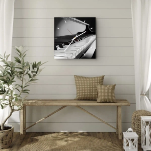 Reloj de pared - Reloj de vidrio - Teclado de piano en blanco y negro - 30x30cm - Armonía musical - Decoración de pared moderna para salón, cocina y dormitorio ARTTOR