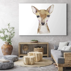 Cuadro sobre lienzo - Impresión de Imagen - Retrato en acuarela de un corzo joven sobre un fondo blanco - 70x50cm - La naturaleza de la inocencia - Decoración de pared moderna para salón y dormitorio ARTTOR