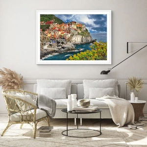 Póster en marco blanco - En el acantilado - 91x61 cm