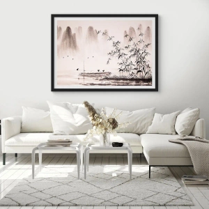 - Este póster representa un sutil paisaje de bambú de estilo oriental en blanco y negro. Perfecto para interiores de estilo zen o minimalista, cuenta con un elegante marco negro que realza su carácter artístico.