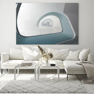 Cuadro sobre vidrio - Impresiones sobre Vidrio - Una escalera moderna en perspectiva abstracta. - 70x50cm - Espiral del río azul - Decoración de pared moderna para salón y dormitorio ARTTOR