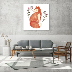 - Esta pintura representa un encantador zorro rojo en estilo acuarela, rodeado de delicadas ramas cubiertas de bayas. Es la decoración perfecta para la habitación de un niño, creando una atmósfera cálida y de cuento de hadas.
