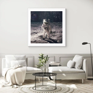 Póster en marco blanco - Saludos desde la Luna - 60x60 cm