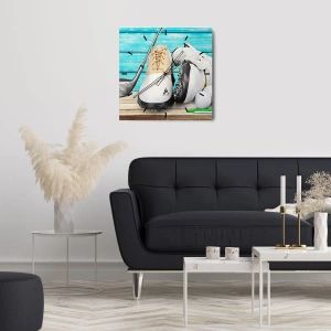 Reloj de pared - Reloj de vidrio - Un conjunto de accesorios de golf sobre un fondo de madera. - 30x30cm - Todo listo - Decoración de pared moderna para salón y dormitorio ARTTOR