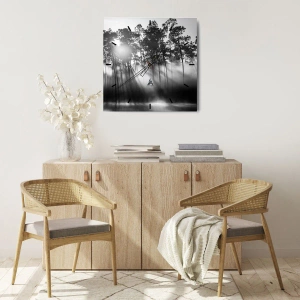 Reloj de pared - Reloj de vidrio - Bosque blanco y negro en la niebla de la mañana. - 30x30cm - Sol imparable - Decoración de pared moderna para salón y dormitorio ARTTOR