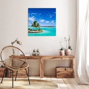 Cuadro sobre lienzo - Impresión de Imagen - Una isla exótica con palmeras sobre aguas turquesas. - 50x70cm - El paraíso en la Tierra - Decoración de pared moderna para salón y dormitorio ARTTOR