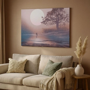 Cuadro sobre lienzo - Impresión de Imagen - Escena romántica con la luna y un árbol junto al agua. - 50x70cm - Rarezas nocturnas - Decoración de pared moderna para salón y dormitorio ARTTOR