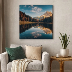 Cuadro sobre lienzo - Impresión de Imagen - Paisaje de montaña con lago y bosque. - 50x70cm - Paisaje duplicado - Decoración de pared moderna para salón y dormitorio ARTTOR