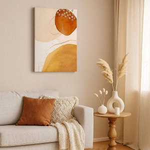 Cuadro sobre lienzo - Impresión de Imagen - Formas abstractas en tonos cálidos de marrón y dorado. - 50x70cm - Movimiento abstracto - Decoración de pared moderna para salón y dormitorio ARTTOR