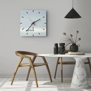 Reloj de pared - Reloj de vidrio - Una figura solitaria se sienta en un banco en un paisaje invernal. - 30x30cm - Sí, estoy esperando - Decoración de pared moderna para salón, cocina y dormitorio ARTTOR