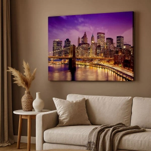 Cuadro sobre lienzo - Impresión de Imagen - Manhattan púrpura y dorado - 100x40 cm