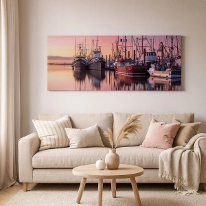 Cuadro sobre lienzo - Impresión de Imagen - Barcos de pesca en el puerto al atardecer - 70x50cm - Descanso antes de partir - Decoración de pared moderna para salón y dormitorio ARTTOR