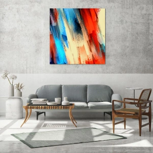 Pinceladas abstractas en tonos de azul, rojo y beige crean una composición dinámica que deleita con su energía y expresividad. Esta obra de arte combina armonía y creatividad, integrándose a la perfección en espacios de diseño moderno. Los colores, el movimiento y la estructura únicos le otorgan un carácter único.