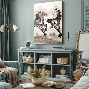 Cuadro mural - Gráfico dinámico de caballos al galope en estilo oriental