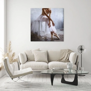 Cuadro sobre vidrio - Impresiones sobre Vidrio - Una bailarina con falda de tul descansa en el pasillo. - 50x70cm - Antes de que brillen las luces del escenario - Decoración de pared moderna para salón y dormitorio ARTTOR