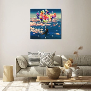 Reloj de pared - Reloj de vidrio - Una figura flotando en el aire con globos de colores. - 30x30cm - Un sueño de infancia hecho realidad - Decoración de pared moderna para salón, cocina y dormitorio ARTTOR