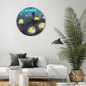 Reloj de pared - Reloj de vidrio - Una figura en un barco rodeada de bolas luminosas en el agua. - 30x30cm - Cosas que los filósofos nunca soñaron - Decoración de pared moderna para salón y dormitorio ARTTOR