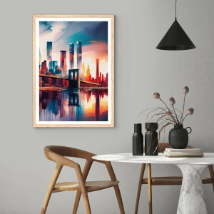 Póster en marco roble claro - Nueva York siempre luce - 100x70 cm