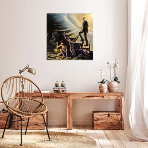 Esta pintura de 70 x 50 cm será perfecta como punto focal para un diseño de interiores con un carácter profundo y filosófico. El formato horizontal enfatiza la dinámica de la escena, creando un efecto de profundidad y tensión. La impresión en lienzo de alta calidad garantiza la solidez del color y la resistencia a la decoloración, asegurando la durabilidad de la decoración.