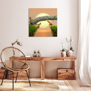Cuadro sobre lienzo - Impresión de Imagen - Hormigas construyendo un puente de ramas con el sol poniente como telón de fondo. - 70x50cm - Trabajar juntos con alegría - Decoración de pared moderna para salón y dormitorio ARTTOR