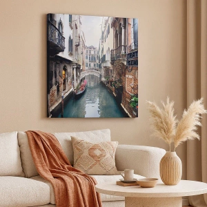 Cuadro sobre lienzo - Impresión de Imagen - Un canal en Venecia con una góndola y edificios históricos. - 140x50cm - Paisaje veneciano con góndola y puente - Decoración de pared moderna para salón y dormitorio ARTTOR