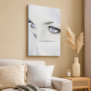Cuadro sobre lienzo - Impresión de Imagen - Retrato de una mujer con ojos azules ocultos tras un velo blanco. - 160x50cm - Directamente de las mil y una noches - Decoración de pared moderna para salón y dormitorio ARTTOR