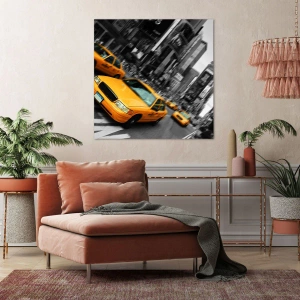 El lienzo "Taxis amarillos en Nueva York" representa una escena dinámica de la vida urbana, donde los taxis amarillos circulan por una intersección concurrida. El intenso amarillo de los vehículos contrasta a la perfección con el fondo monocromático, atrayendo la atención y aportando a la imagen una energía extraordinaria.