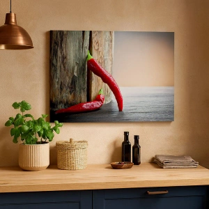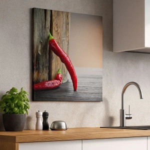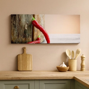 Cuadro sobre lienzo - Impresión de Imagen - Dos chiles rojos sobre un fondo de madera con acento rústico. - 100x70cm - Pimientos rojos picantes - Decoración de pared moderna para salón y dormitorio ARTTOR