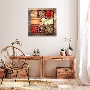 Cuadro sobre lienzo - Impresión de Imagen - Caja de madera con varias especias en compartimentos. - 120x50cm - Orden de formas, composición de aromas - Decoración de pared moderna para salón y dormitorio ARTTOR