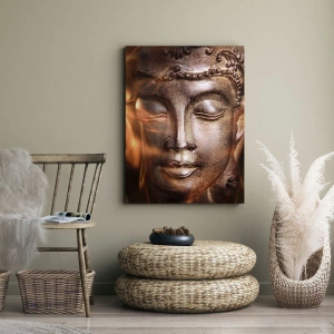 Cuadro sobre lienzo - Impresión de Imagen - Una estatua de Buda en medio de llamas de tonos dorados. - 140x50cm - Solo existe el aquí y el ahora - Decoración de pared moderna para salón y dormitorio ARTTOR