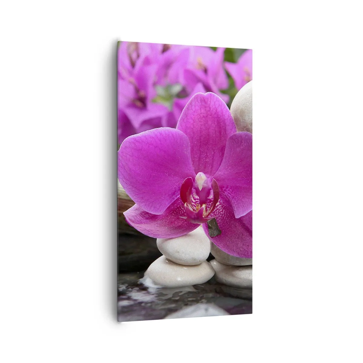 El lienzo se estira sobre un marco. Los lados y los bordes están impresos, creando una continuación de la imagen. El cuadro está listo para ser colgado en la pared. Cada producto tiene un enganche incorporado al marco y un kit de montaje (tornillo + taco).