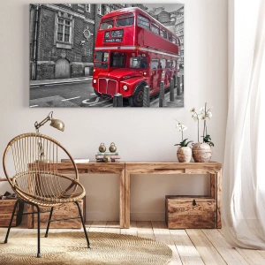 Cuadro sobre lienzo - Impresión de Imagen - Un autobús rojo de dos pisos en Londres con un fondo de arquitectura clásica. - 120x80cm - El mismo de siempre - Decoración de pared moderna para salón y dormitorio ARTTOR