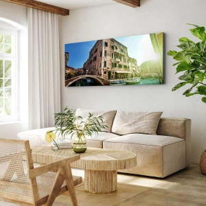 Cuadro sobre lienzo - Impresión de Imagen - Puente y canal de Venecia con arquitectura histórica - 140x50cm - Venecia - Amore Mio - Decoración de pared moderna para salón y dormitorio ARTTOR