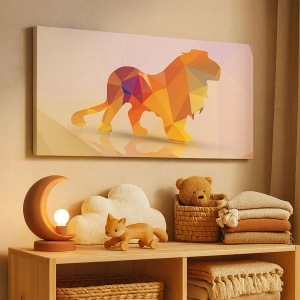 Cuadro sobre lienzo - Impresión de Imagen - Silueta geométrica de un león en tonos amarillo y naranja. - 70x50cm - El rey de los diamantes - Decoración de pared moderna para salón y dormitorio ARTTOR