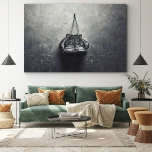 Cuadro sobre lienzo - Impresión de Imagen - Guantes de boxeo viejos contra la pared - 140x50cm - Tiempo de lucha y tiempo de paz - Decoración de pared moderna para salón y dormitorio ARTTOR