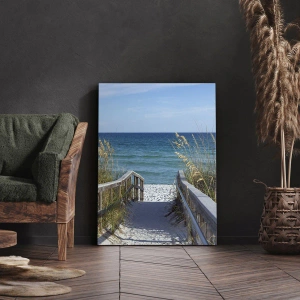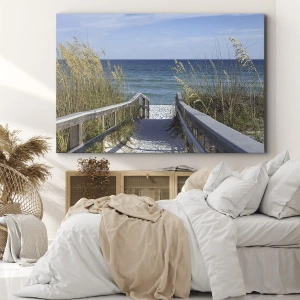 Cuadro sobre lienzo - Impresión de Imagen - Camino a la playa con vistas al mar - 160x50cm - En el sol, en el viento - Decoración de pared moderna para salón y dormitorio ARTTOR