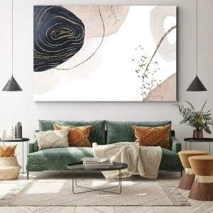 Cuadro sobre lienzo - Impresión de Imagen - Formas abstractas en tonos beige y azul marino con detalles dorados. - 120x50cm - Todo fluye - Decoración de pared moderna para salón y dormitorio ARTTOR