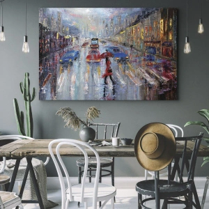 Cuadro sobre lienzo - Impresión de Imagen - Una tarde de lluvia en la ciudad - 65x120 cm