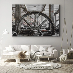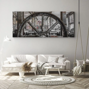Cuadro sobre lienzo - Impresión de Imagen - Un antiguo mecanismo en un interior industrial abandonado. - 120x50cm - La vida secreta de una fábrica - Decoración de pared moderna para salón y dormitorio ARTTOR