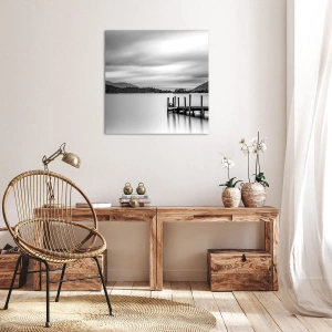 Cuadro sobre lienzo - Impresión de Imagen - Paisaje en blanco y negro con un muelle sobre un lago. - 100x70cm - Dulzura y la fuerza - Decoración de pared moderna para salón y dormitorio ARTTOR
