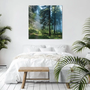 Cuadro sobre lienzo - Impresión de Imagen - Un sendero forestal iluminado por los rayos del sol de la mañana. - 100x70cm - Radiante por la mañana - Decoración de pared moderna para salón y dormitorio ARTTOR