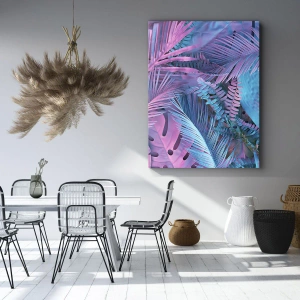 Cuadro sobre lienzo - Impresión de Imagen - Hojas tropicales en tonos rosa y azul. - 100x70cm - Trópicos en rosa y azul - Decoración de pared moderna para salón y dormitorio ARTTOR