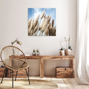 Cuadro sobre lienzo - Impresión de Imagen - Delicadas hierbas de la pampa contra un cielo azul con nubes ligeras - 120x80cm - Una caricia soleada y ventosa - Decoración de pared moderna para salón y dormitorio ARTTOR
